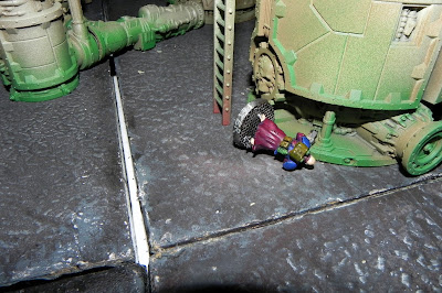 We approached in two groups, taking what little cover the crumbling manufactorum walls could offer. Two of us mugged a first sentinel, while Deacon Steven freed Brother Peter.